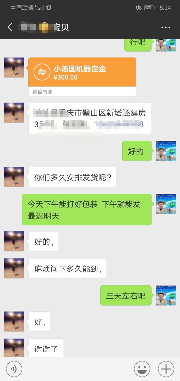 經過我們細心的介紹,耐心的解說!重慶客戶從最初的不信任到現在打款訂購設備,您給我信任,我還您滿意!成交只是服務的開始!合作共贏,共同發(fā)展!