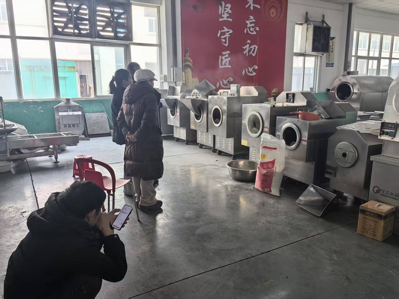 鶴壁客戶來廠試機(jī)小型炒貨設(shè)備炒芝麻當(dāng)場定購小型炒貨設(shè)備。